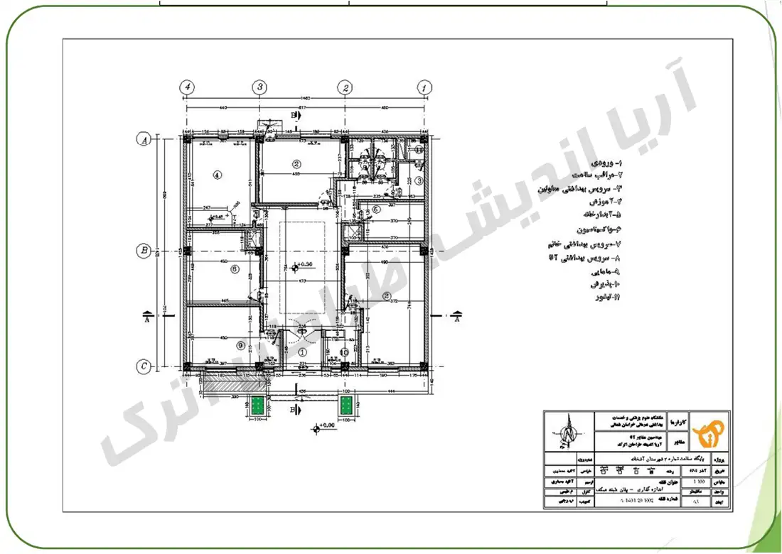 طراحی پایگاه سلامت شماره 2 آشخانه دانشگاه علوم پزشکی خراسان شمالی توضیح کوتاه در مورد پروژه طراحی پایگاه سلامت شماره 2 آشخانه اجرا توسط مهندسین مشاور آریا اندیشه طراحان اترک – مهندسین مشاور بجنورد گالری عکس پروژه مشخصات پروژه متراژ :مشخص نشده متر مربع مشاور :مهندسین آریا اندیشه طراحان اترک کارفرما :دانشگاه علوم پزشکی خراسان شمالی عنوان :اندازه گذاری پلان همکف مقیاس :1/100 واحد :سانتیمتر شماره پروژه :14003 تاریخ پروژه :اذر 1401 ترسیم :آتلیه معماری کنترل :محمد طبسی تصویب :بهمن رجبی طراحی :اتلیه معماری ابعاد :A3 رشته :معماری بازگشت به صفحه اصلی مشاوره سریع